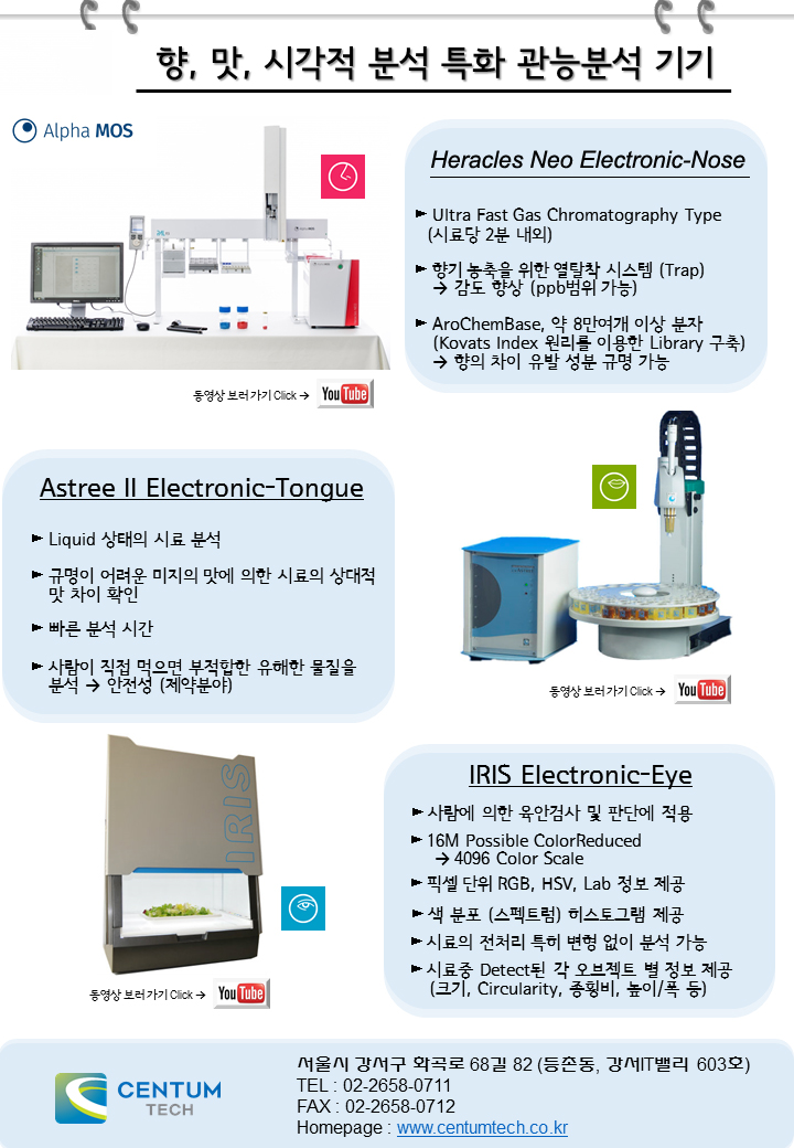 그리고 저희 센텀테크의 전자코 및 전자혀, 전자눈 분석 장비들에는 더 많은 관심 부탁드립니다.